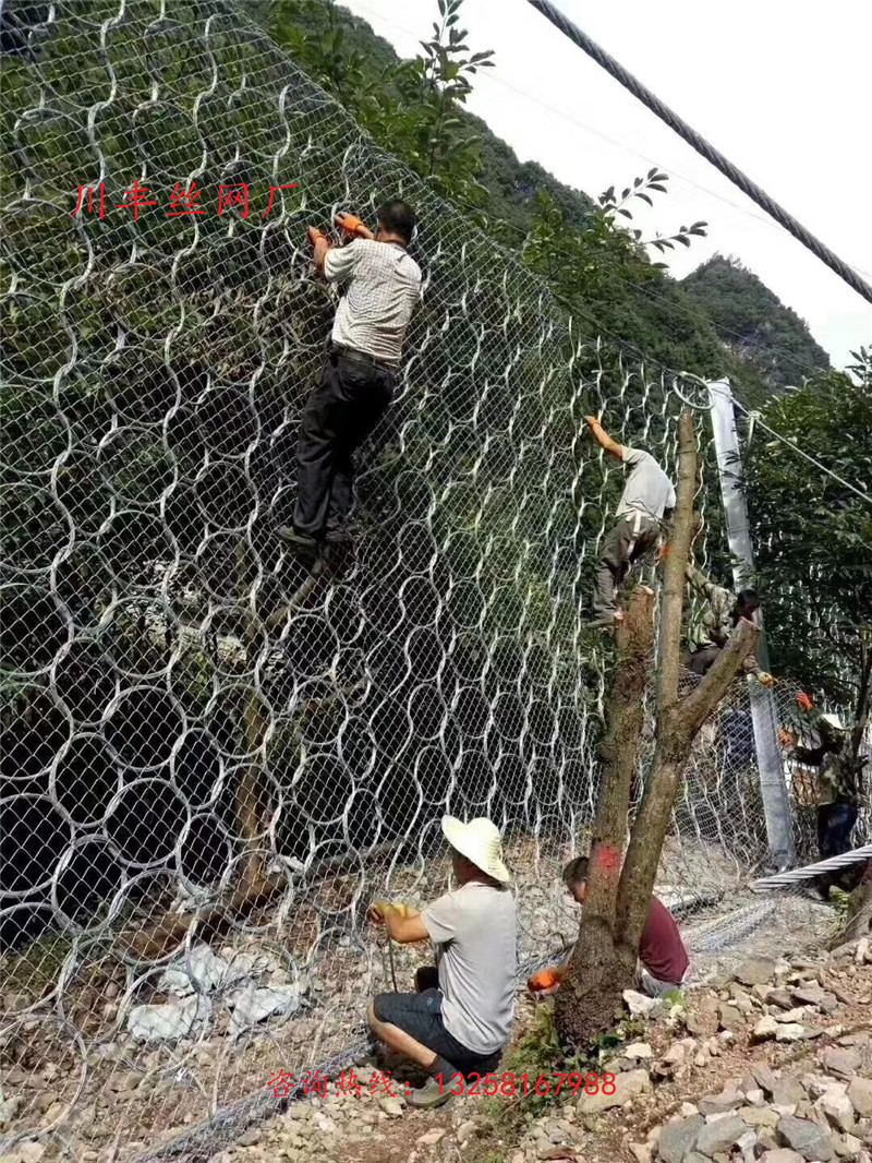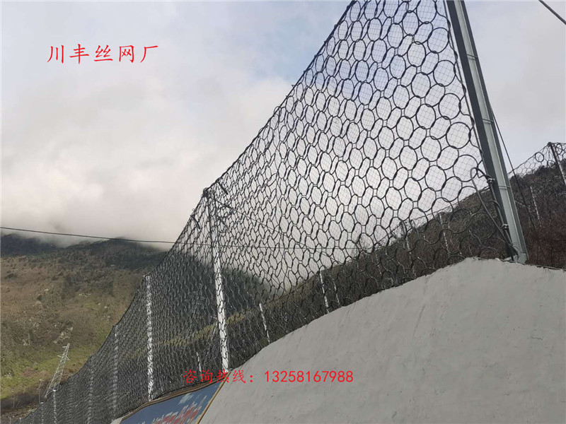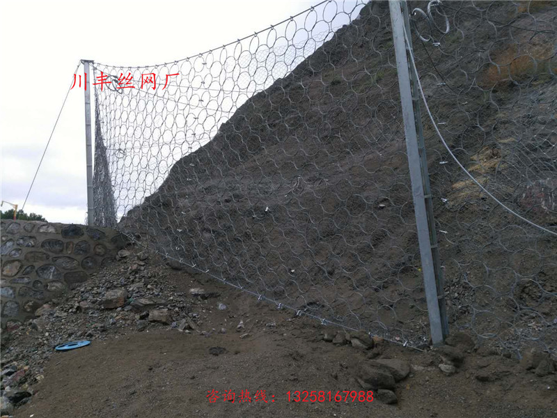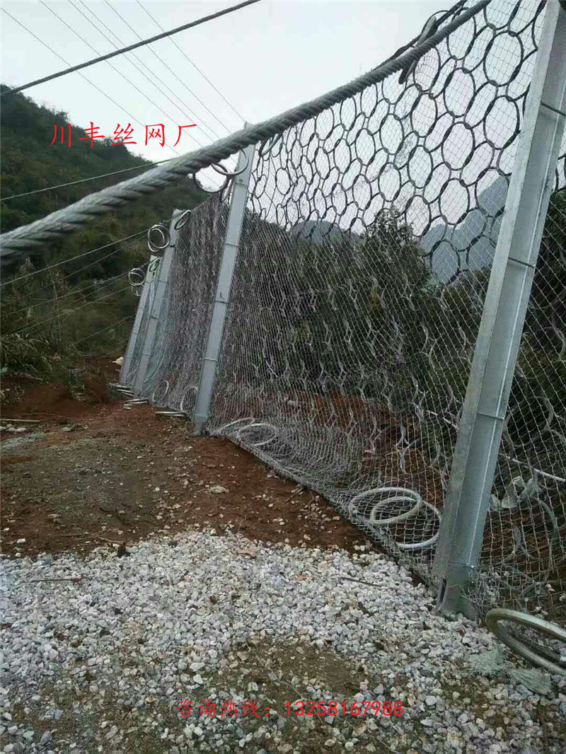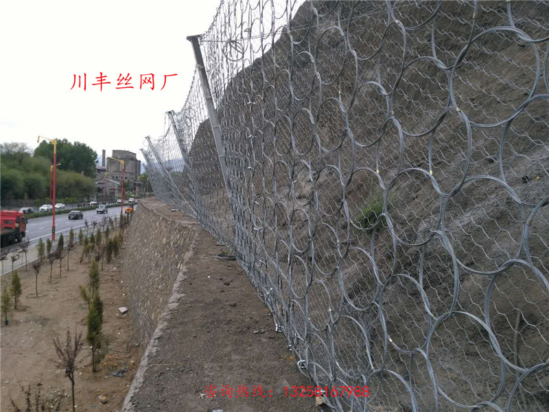 適應(yīng)建筑業(yè)的工廠化發(fā)展趨勢(shì),系統(tǒng)部件全部實(shí)行標(biāo)準(zhǔn)化的工廠生產(chǎn),現(xiàn)場(chǎng)施工除少量的以錨桿安裝為主的基礎(chǔ)施工外,主要為積木式的裝配作業(yè),施工安裝和維修人員僅需要少量常規(guī)簡(jiǎn)由于鋼絲繩網(wǎng)形式的攔石網(wǎng)能級(jí)有限,已開發(fā)成功了在落石沖擊過程中能發(fā)生自身幾何形態(tài)改變、具有更為突出柔性特征的環(huán)形網(wǎng)來取代鋼絲繩網(wǎng),以此為基礎(chǔ)的攔石網(wǎng)能夠?qū)崿F(xiàn)3000kJ以上的落石攔截,并能進(jìn)一步簡(jiǎn)化結(jié)構(gòu)形式(如支撐繩和減壓環(huán)的配置)、方便局部受損后的維護(hù)修復(fù),已經(jīng)成為一種替代鋼絲繩網(wǎng)系統(tǒng)的新型攔石網(wǎng)(RXI型),實(shí)現(xiàn)了SNS被動(dòng)防護(hù)系統(tǒng)的更新?lián)Q代和升級(jí)。 環(huán)形網(wǎng)是有單根鋼絲盤結(jié)而成兩端頭間搭接長(zhǎng)度不小于100mm。盤結(jié)而成的環(huán)用鋼質(zhì)或鋁合金緊固件 至少在均勻分布的三處箍緊,且其中一處位于兩端頭的搭接處,除邊緣環(huán)孔外,每個(gè)環(huán)與其周邊的4個(gè)環(huán)相扣聯(lián)。單機(jī)具即可進(jìn)行系統(tǒng)的安裝、維修和部件更換。