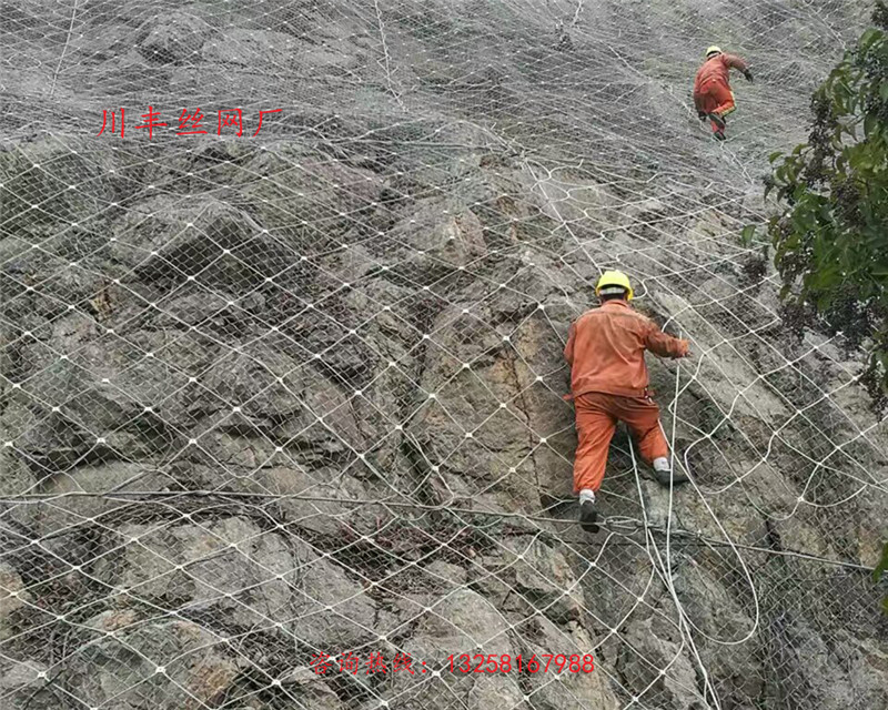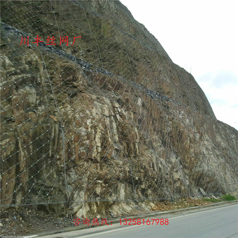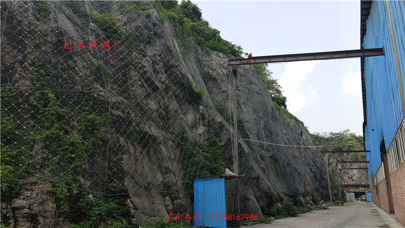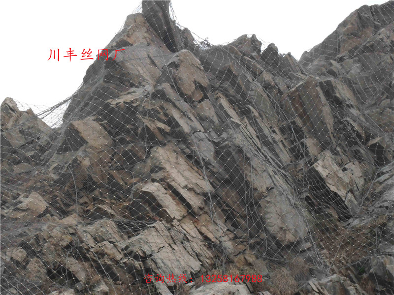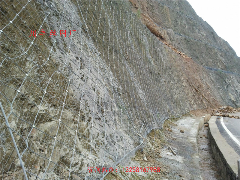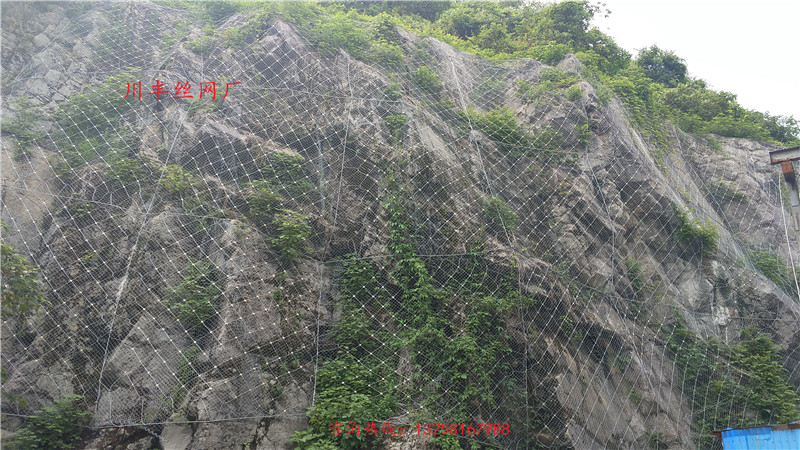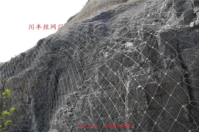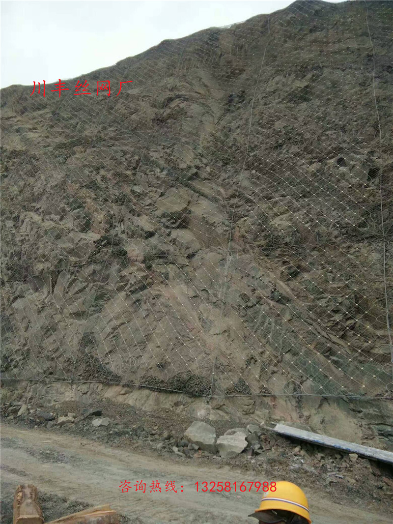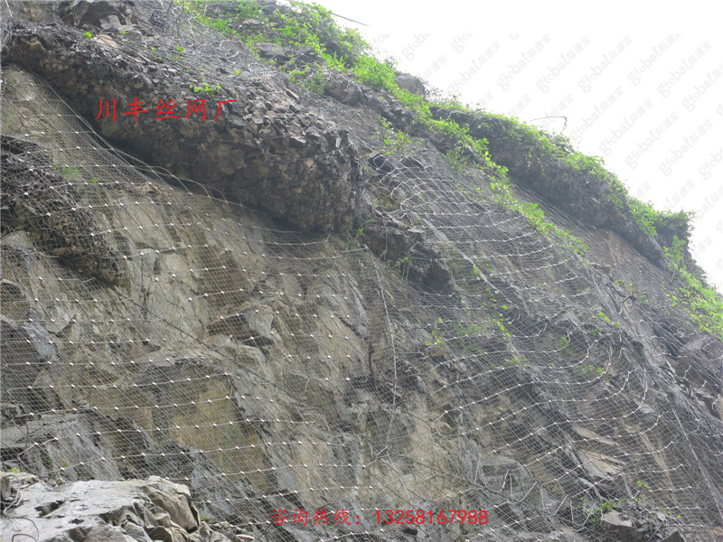 以鋼絲繩網為主的各類柔性網覆蓋包裹在所需防護斜坡或巖石上,以限制坡面巖石土體的風化剝落或破壞以及為巖崩塌(加固作用),或將落石控制于一定范圍內運動(圍護作用)。